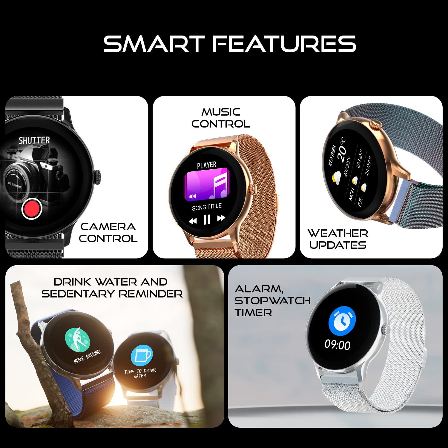 Accelerometer, Activity Tracker, Alarm Clock, Breathe, SpO2, Heart Rate Tracking, Multisport Tracker, Music Player, Notifications, Pedometer, Phone Call, Round Display Bluetooth Calling , 120 Sports Mode Tracking, In Built Mic & Speaker,IP67 Rating, Calorie Tracker, Camera, Daily Workout Memory, Distance Tracker, Sedentary Reminder, Sleep Monitor, Text message, Time DisplayAccelerometer, Activity Tracker, Alarm Clock, Breathe, SpO2, Heart Rate Tracking, Multisport Tracker, Music Play…See more